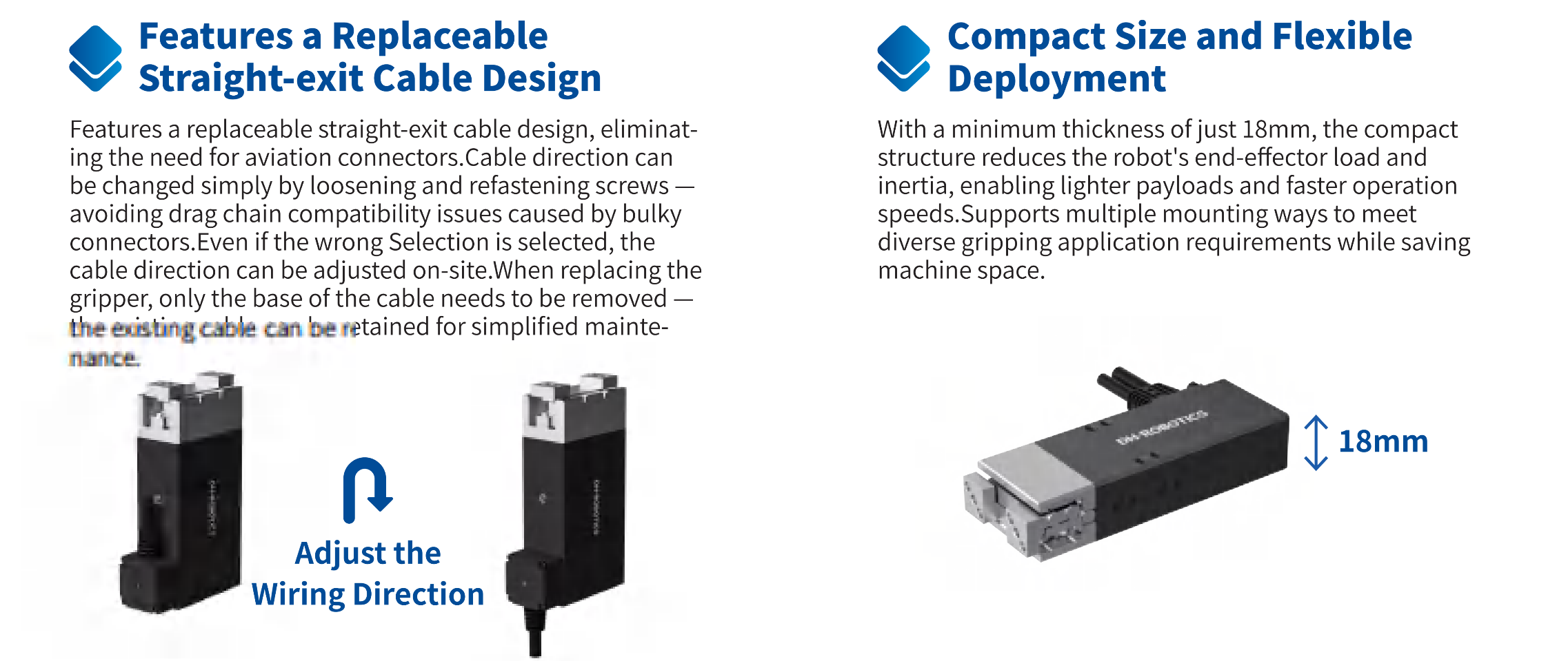 The gripper linkage mecha nism supports envelope adaptive grasping, which is more stable to grip round,spherical or special-shaped objects.