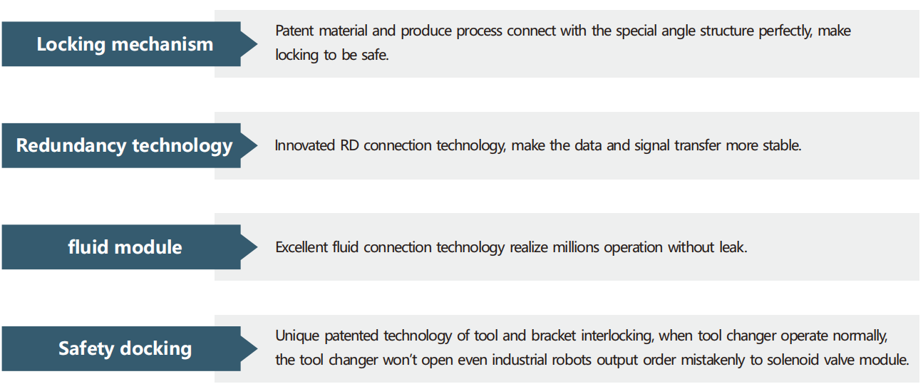 - With air pressure loss self-locking function, even if the air pressure in master plate cut off accidentally, master plate and tool plate will not be separate.